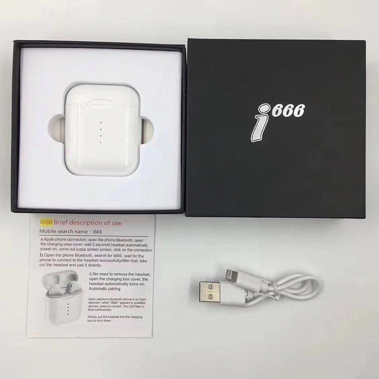 هندزفری مدل i666 با الهام از طراحی بی نقص ایرپاد ، تا حد زیادی مشابه و هم سایز آن ساخته شده است. گوشی های هدست در داخل یک باکس قرار دارند که برای نگهداری و شارژ آنها استفاده میشود. برای شارژ هندزفریها پس از شارژ باتری باکس، به محض قرار دادن هندزفریها در داخل قاب، اتومات شارژ میشوند. با هر بار شارژ کامل هندزفری ها شما میتوانید به مدت 2 تا 4 ساعت بدون وقفه از آن استفاده کنید. در مورد کیفیت صدا، این مدل کیفیت بسیار خوبی دارد و شما با استفده از آن لذت گوش دادن به موسیقی را تجربه خواهید کرد. البته بدیهیست که i666 کیفیت اپل را ندارد اما از کیفیت نسبتا بالایی برخوردار بوده و میتواند انتظارات شما را از یک هندزفری تا حد زیادی برآورده سازد. گوشی ها به صورت لمس یا تاچ کنترل میشود و کلید فیزیکی ندارد. برای جفت شدن یا به اصطلاح Pair کردن هندزفریها و استفاده همزمان برای پخش صدا از هر دوگوشی، لازم نیست شما هیچ کاری انجام دهید، به محض خارج شدن هندزفری ها از قاب شارژ هر کدام از آنها بصورت اتومات روشن شده و با یکدیگر جفت یا به اصطلاح Pair میگردد. پس از اتصال هندزفری ها به هم، لازم است بلوتوث تلفن همراه خود را روشن کنید و از لیست موجود گزینه i666 را انتخاب کنید. در این مدل هر دو گوشی دارای میکروفن بوده و قابلیت استفاده و مکالمه به صورت مجزا را دارد.