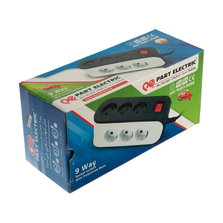 احتمالا بارها برای شما هم پیش آمده که در خانه یا محل کار، ظرفیت همهی پریزهای برق با دستگاههای مختلف صوتی، تصویری یا اداری تکمیل شده است. این مورد باعث میشود که برای ورودی دستگاه جدید یا موقت نظیر شارژ موبایل یا لب تاب و سایر ابزار برقی با مشکل کمبود پریز مواجه شده باشید. چند راهی برق پارت الکتریک کد 0901، یک چندراهی برق بسیار مناسب برای فضاهایی است که نیاز به تعداد پریز زیاد در فضای کم وجود دارد. با داشتن 6 عدد پریز ارتدار در دو سمت و سه عدد پریز معمولی در بخش بالا، این محصول میتواند کمک زیادی جهت برق رسانی در محیط های اداری، فضاهای کار گروهی و مواردی از این قبیل داشته باشد. ظرفیت جریان عبوری از چند راهی برق پارت الکتریک کد 0901 برابر با 16 آمپر بوده یعنی کاملا مناسب دستگاههای صوتی تصویری خواهد بود. همچنین کی از ویژگیهای مناسب چند راهی برق پارت الکتریک کد 0901، کابل 1.8 متری بوده که برای برق رسانی مفید است.